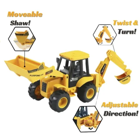 - VERSATILE FEATURES: Dual-function vehicle combines front loader and rear backhoe capabilities with articulated design for realistic construction play